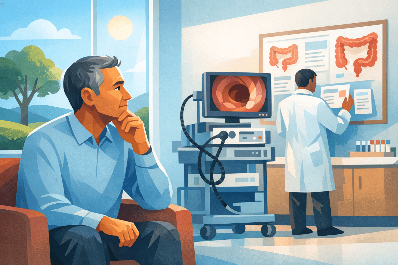 Surveillance colonoscopy for IBD uses high‑definition scopes, careful inspection and targeted biopsies to search for dysplasia in areas of past or current colitis. The timing is based on IBD‑related risk rather than age alone, and findings guide how soon the next exam should occur. (gastro.org)